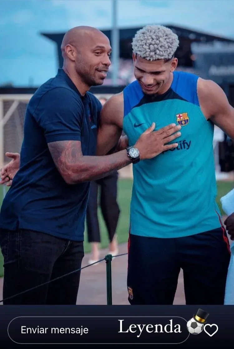 Ronald Araujo publicó una fotografía cuando era saludado por Henry, quien jugó en Barcelona entre 2007 y 2010, con el mensaje "Leyenda".