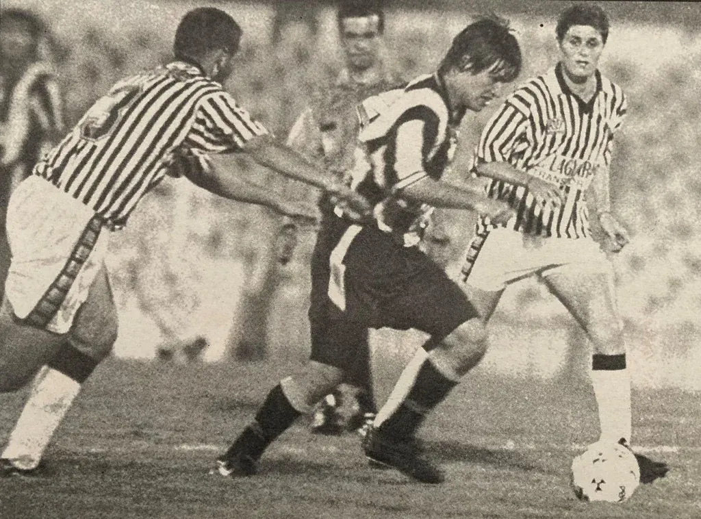 Antonio Pacheco en acción durante el partido Peñarol-Río Negro de San José en la Liguilla de 1997