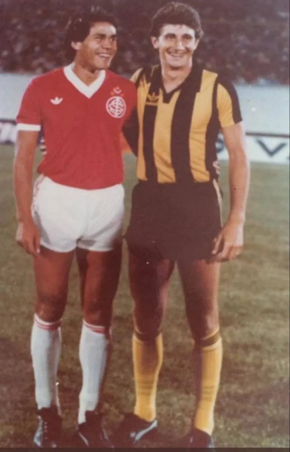 Ruben Paz junto a Fernando Morena el día que debutó con Internacional de Porto Alegre en el Estadio Centenario en febrero de 1982; Paz hizo allí su primer tanto con su nuevo equipo ¿Es cierto que Inter amenazó a Gremio con presentar una demanda por una supuesta confabulación para fracturarlo?