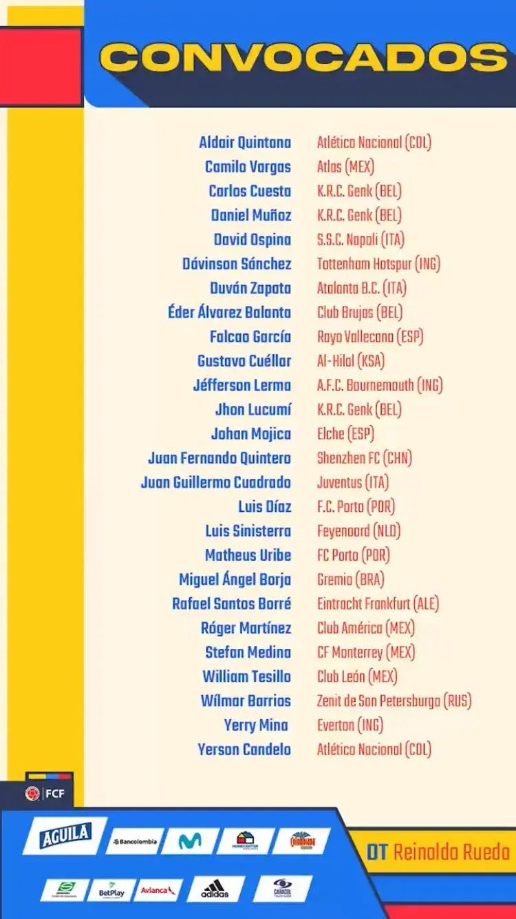 Rueda dio la lista de Colombia, rival de Uruguay, y vuelven tres futbolistas
