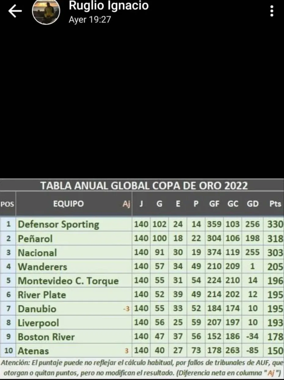 Y añadió: "'Ruglio vino a destrozar las formativas', repitieron hasta el cansancio gente que nunca en su vida pisó una cancha de formativas. Peñarol luego de muchos años vuelve a quedar segundo en la Anual sacándole 15 puntos a Nacional".