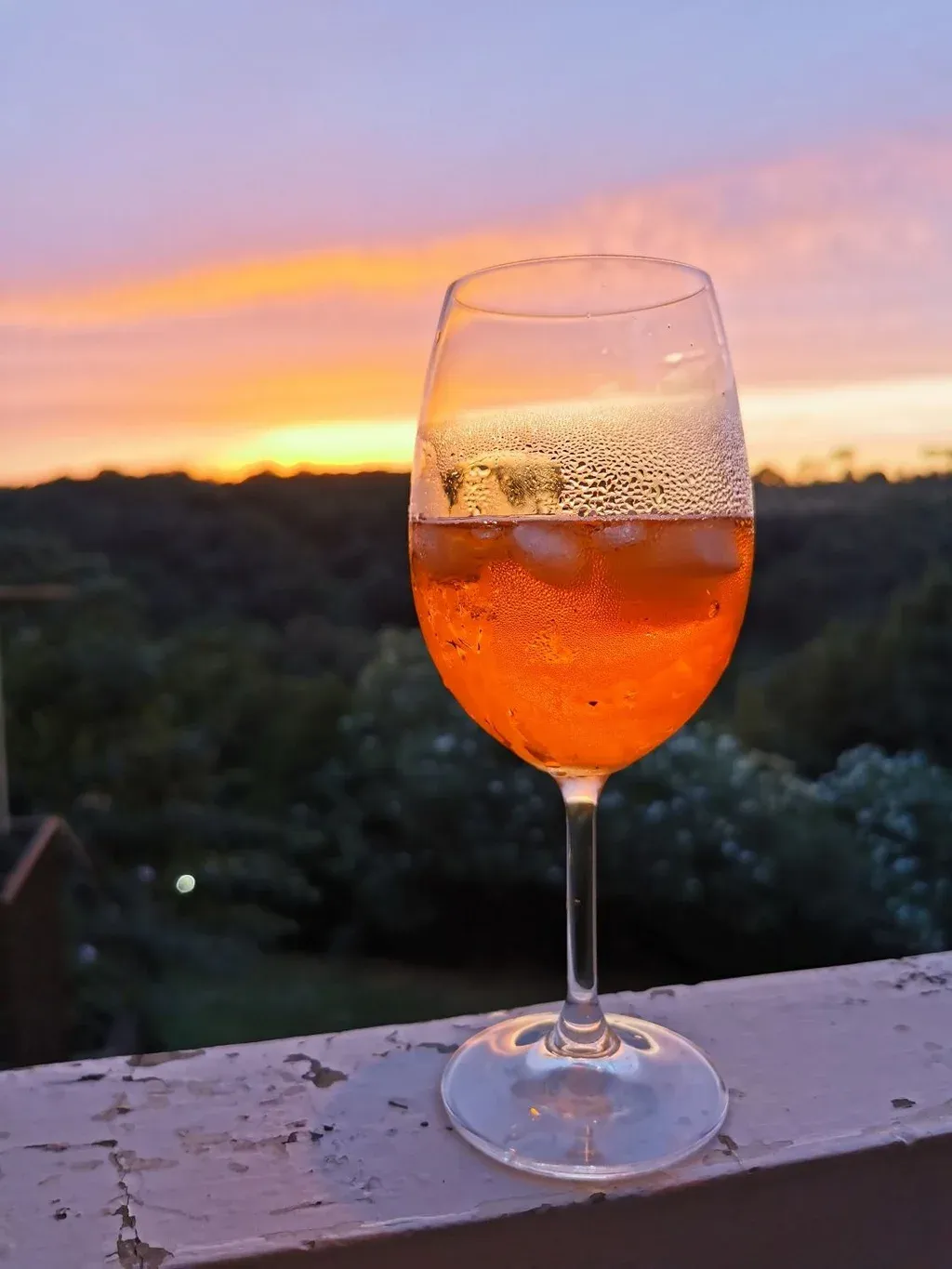 No era para nada fan de esta bebida hasta que me convencieron de que es deliciosa y bueno, sumo una nueva adicción a mi repertorio, que se hace así: una medida de proseccco (o espumante o champagne, aunque el original va con prosecco), una de Aperol, un chorro de soda (idealmente de sifón, pero si no agua con gas) y una rodada de naranja. El secreto está en poner antes el prosecco y en no exagerar con el Aperol, porque termina tapando todo el resto de los sabores. Los italianos son muy machetes con el hielo y me miran con cara de odio cuando les pido más, pero me gusta con mucho pero mucho hielo.