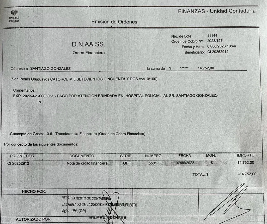 El exdirector de Convivencia y Seguridad Ciudadana Santiago González le pagó al Hospital Policial un total de $14.752 por el uso irregular de este centro de salud, exclusivo para funcionarios policiales y sus familiares.