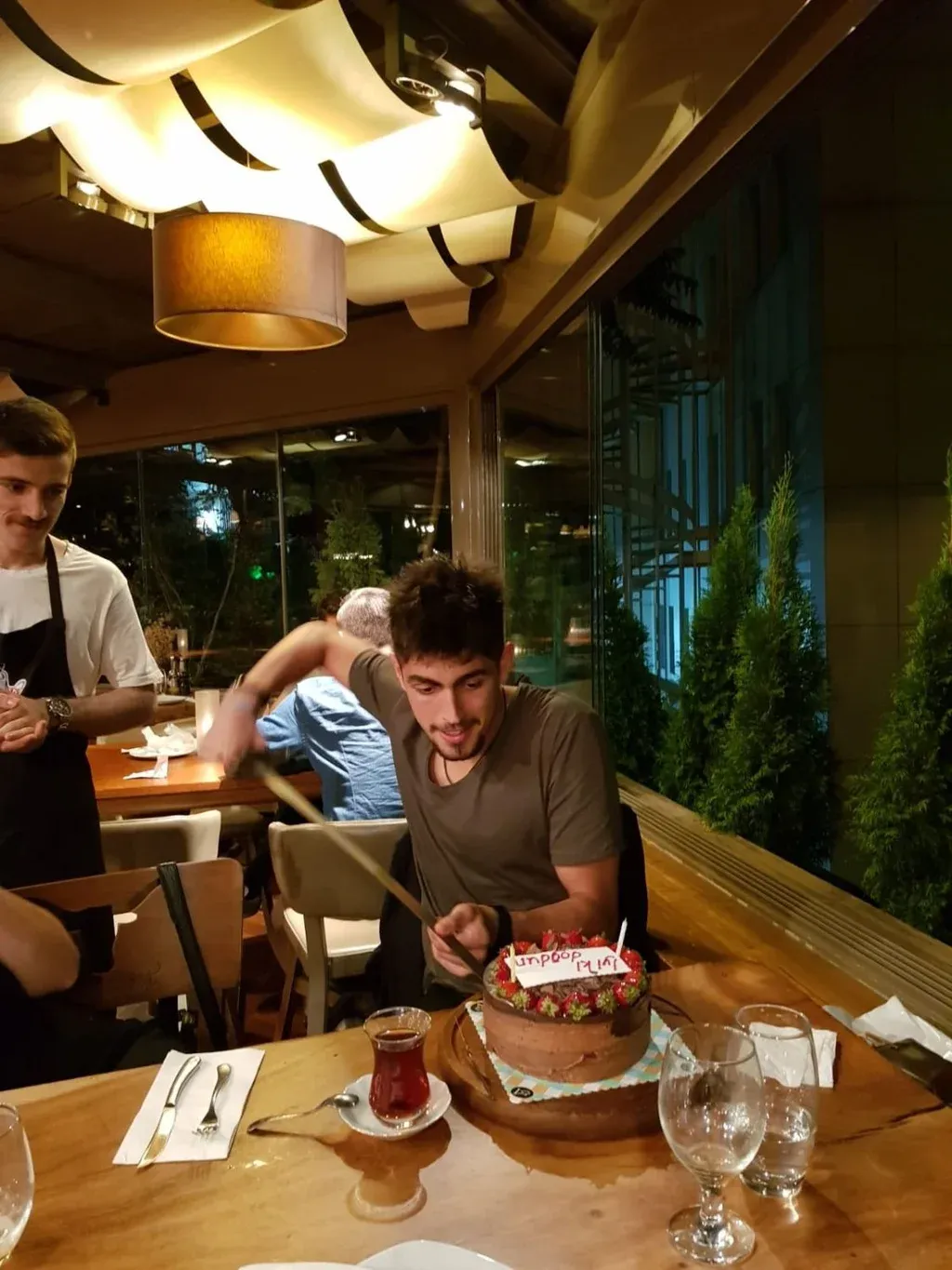 “En Turquía está el famoso Salt Bae (el chef que es viral en Instagram), es turco, y en Ankara está el restaurante y ellos te venden todo el show. Todos los mozos aparte de su indumentaria tienen que dejarse el bigote, es parte del uniforme. Y estas comiendo, pedís un plato y te prenden una llamarada, te pican la carne todo raro. Y fui a festejar mi cumpleaños y me dijeron si quería llevar la torta o ellos la llevaban. Les dije que la pusieran ellos. Y cuando te llevan la torta van todos y te cantan, y la tradición acá es que tenes que cortarla con una espada. Y para la torta te traen una espada, te dan el mango y yo quería agárralo y no me la soltaba, y le digo ‘qué pasa’, y me dicen ‘tenes que darle algo de plata’, y le di 20 liras y recién ahí me la soltó. Y corté la torta con la espada y ahí me aplaudieron todos”.