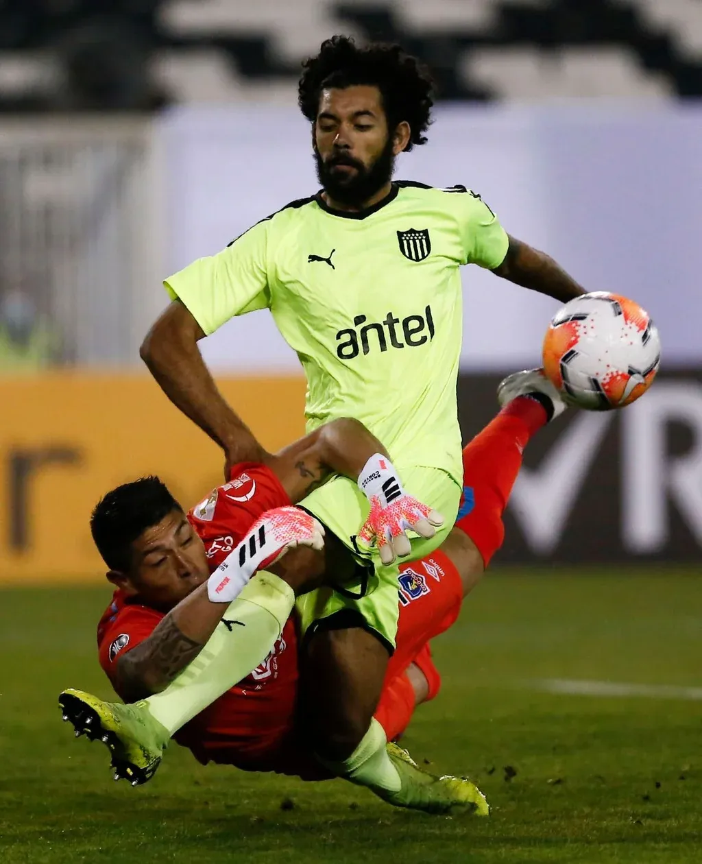El aurinegro arrancó a todo tren siendo protagonista del primer tiempo donde tomó ventaja con gol de Facundo Pellistri. Pero en el complemento, el ingreso de Leonardo Valencia en el equipo chileno modificó el trámite y Colo Colo comenzó a dañar al aurinegro hasta dar vuelta el partido en 10 minutos con anotaciones de Gabriel Suazo y Esteban Paredes tras un insólito penal cometido por Walter Gargano.
