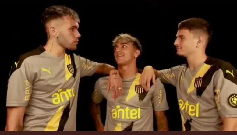Presentación de la camiseta de Peñarol junto a Torres y Álvarez Martínez
