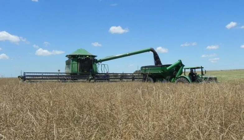 Cosecha de colza en campos próximos a Dolores.