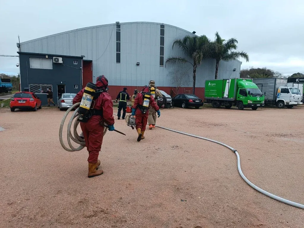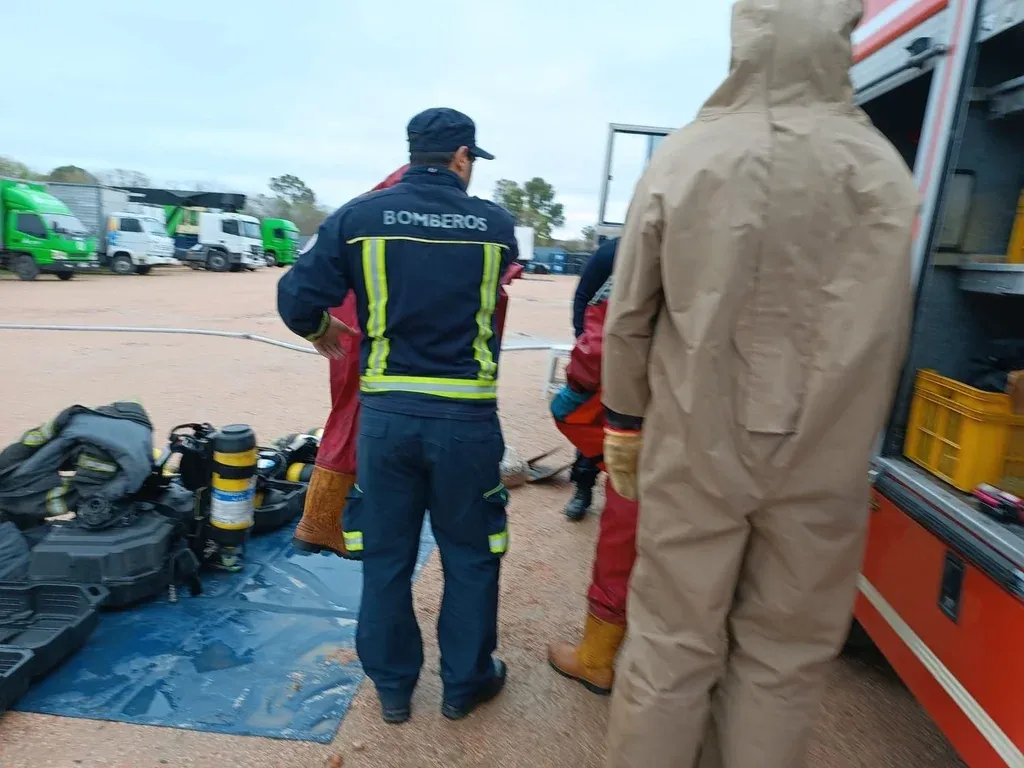 Bomberos debieron asistir de urgencia a un polo logístico ubicado en camino Tomkinson y José Llupes, luego de que se derramaran mil litros de ácido nítrico.