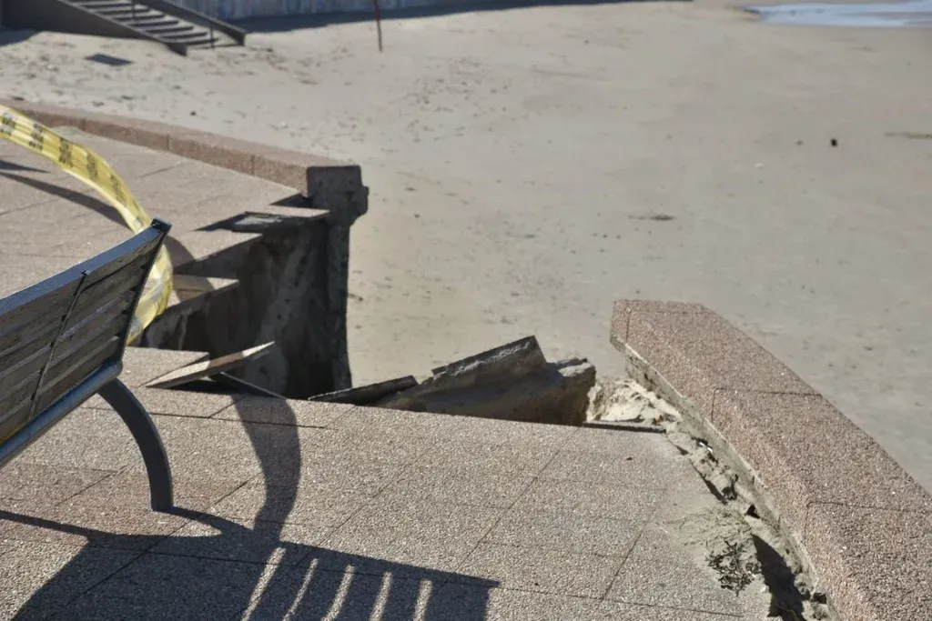 Derrumbe en la rambla frente al Hotel Casino Carrasco