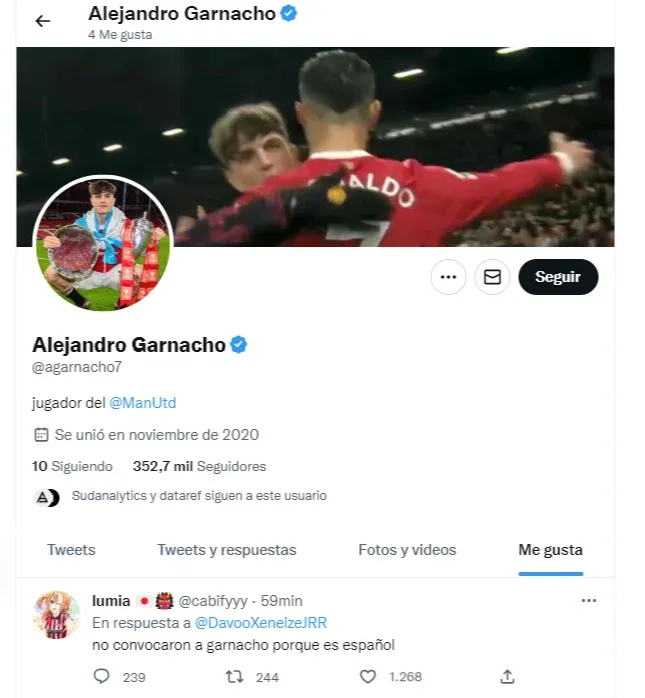 Tras saberse las convocatorias, en su cuenta de Twitter, Garnacho le puso "me gusta" a un tuit de un usuario que decía: "No convocaron a Garnacho porque es español", haciendo alusión a la doble nacionalidad que Garnacho tiene.