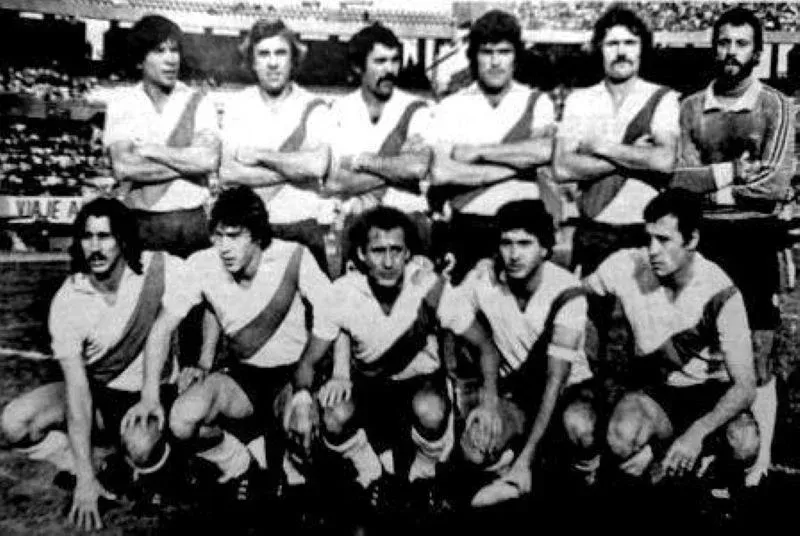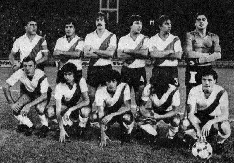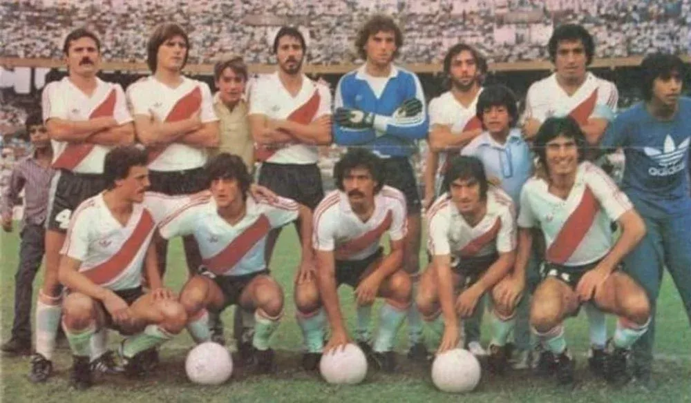 River Plate argentino en 1982: parados: Daniel Passarella, Américo Gallego, Alfredo De los Santos, Julio Olarticoechea, Jorge García y Ubaldo Fillol. Agachados: Reinado Merlo, Mario Kempes, Ramón Díaz, Emilio Commisso y José M. Vieta
