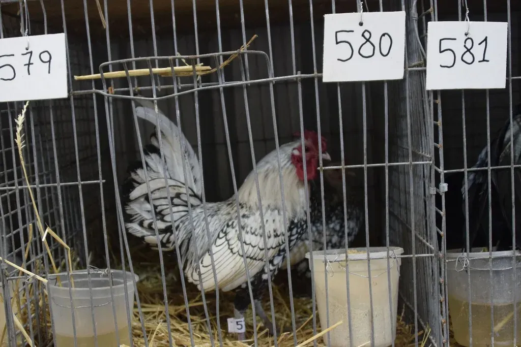 Guillermo Galarza llegó a la Expo Prado este año por primera vez como cabañero, un rol que disfruta como hobby. Expuso cuatro aves enanas: un casal de Sebrigth Plateado, (raza originaria del Reino Unido), y un casal de Belgian d'uccle MilhFlor, (raza desarrollada en Bélgica). De esta última raza es Bartolito un gallo de un año que ganó el premio como mejor ejemplar en su raza