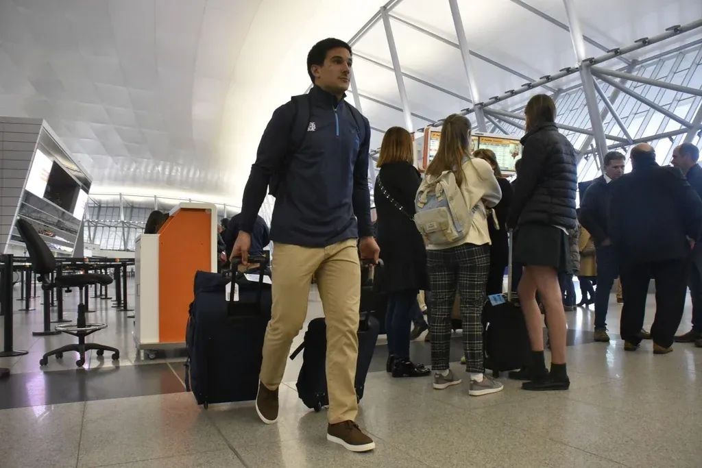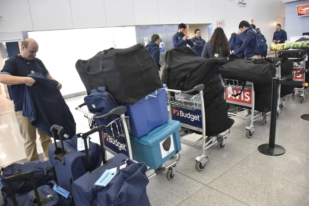 Los Teros hacen el check in en Carrasco. Los espera un viaje larguísimo, de 72 horas, para Japón, para jugar el ansiado Mundial de rugby.