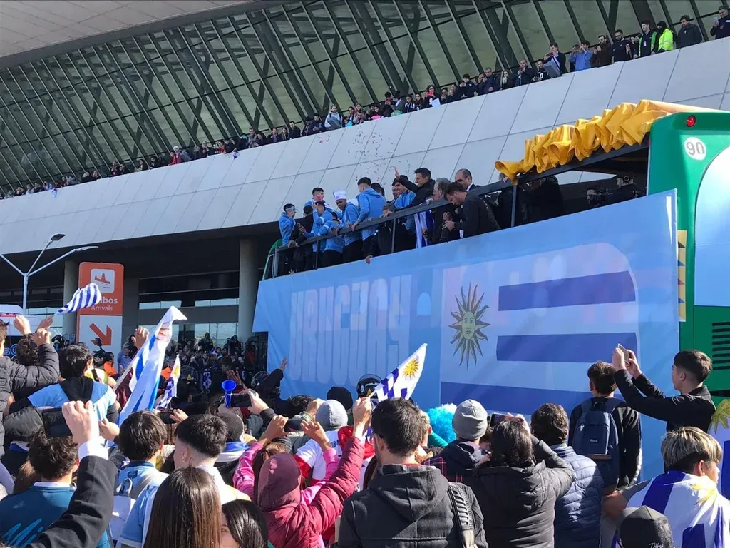 Los campeones del mundo sub 20 llegaron a Montevideo y en el camino desde el aeropuerto de Carrasco al ómnibus, los futbolistas dieron breves declaraciones a los periodistas.