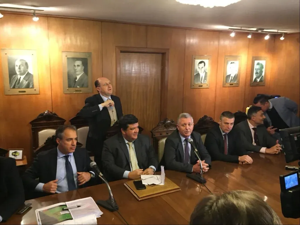 La sala de sesiones del Consejo Directivo mirasol se volvió a vestir de fiesta para recibir a los medios con el fin de informar un nuevo gran paso para la institución: La “Ciudad Deportiva de Peñarol”.