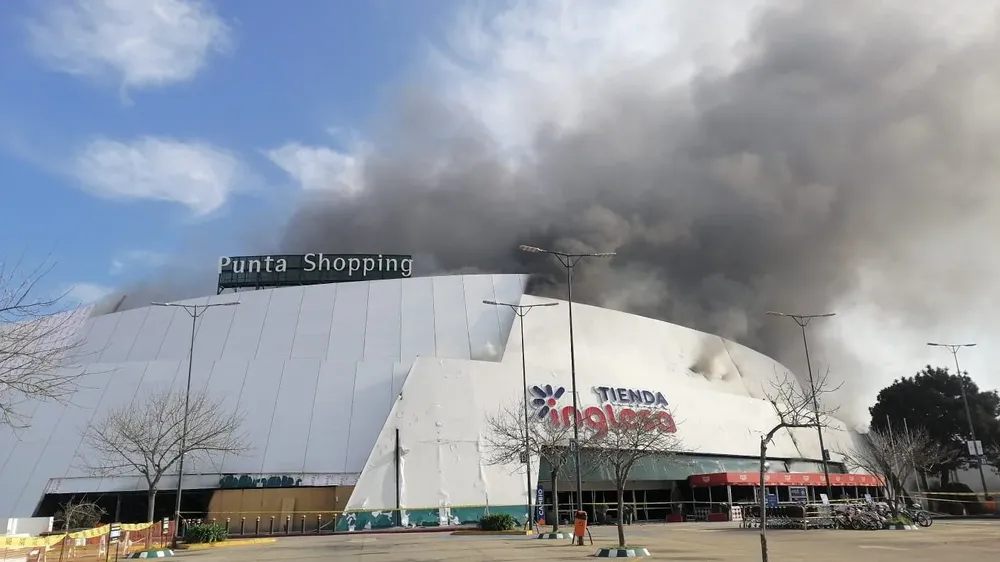 Se agravó incendio en Tienda Inglesa y se derrumbó parte del Punta Shopping