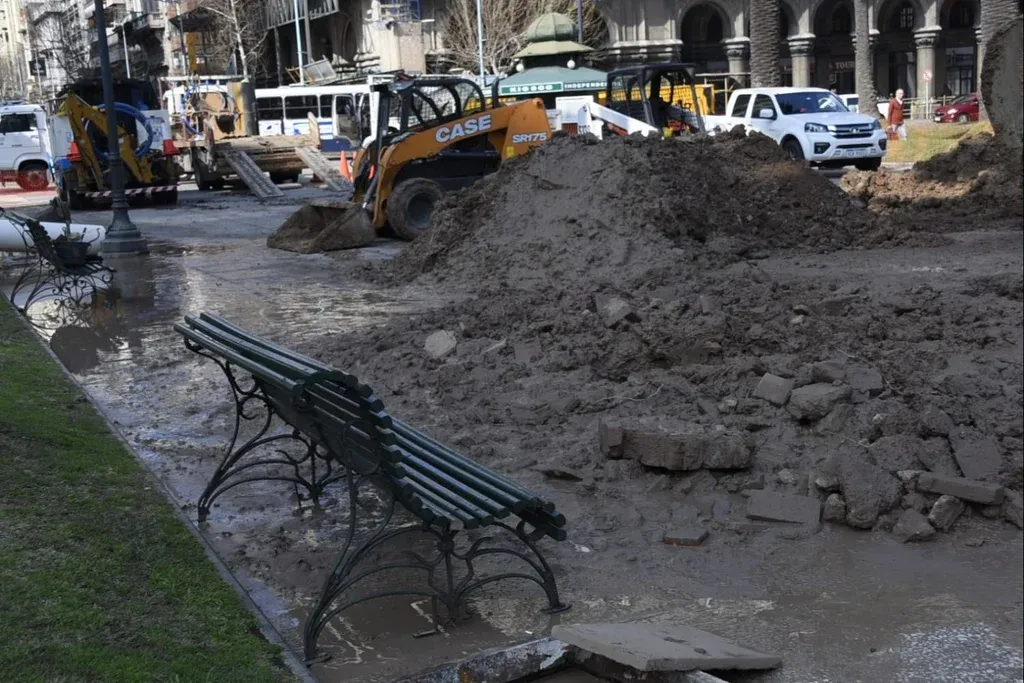 Sobre la hora 9 de este miércoles se rompió un caño en la plaza Independencia en Montevideo.