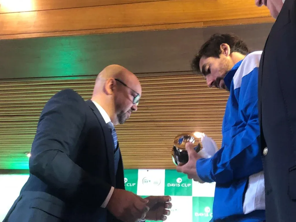 La ITF homenajeó en el mediodía de este viernes a Pablo Cuevas por haber jugado más de 20 ediciones de la Copa Davis.
