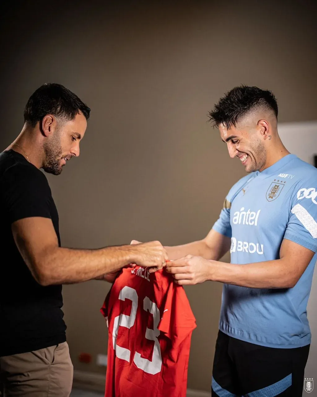 Sebastián Viera y Santiago Mele, encuentro y regalos de arqueros de la selección uruguaya y Junior de Barranquilla