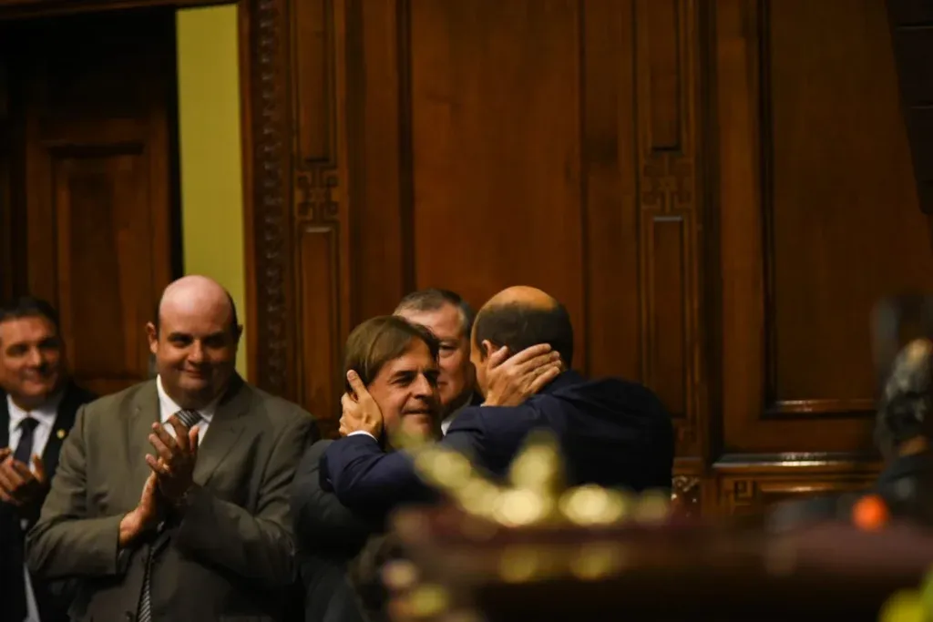 En medio de abrazos, Lema fue saludado entre otros por el presidente electo, Luis Lacalle Pou, y por la futura vicepresidenta, Beatriz Argimón.