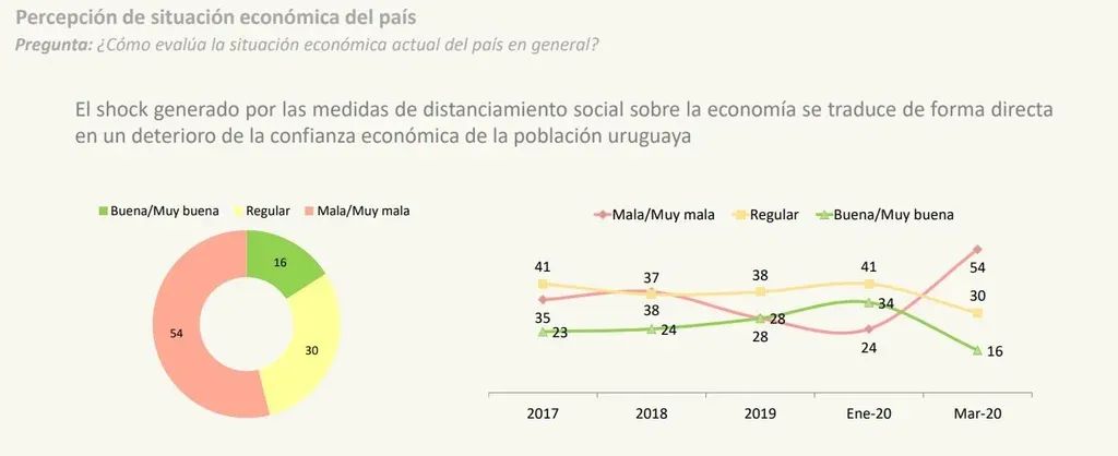 Una encuesta sobre la confianza del consumidor durante marzo arrojó que el shock generado por las medidas de distanciamiento social sobre la economía se han traducido en un exponencial deterioro de la confianza en la población uruguaya, tanto desde el punto de vista personal como general.