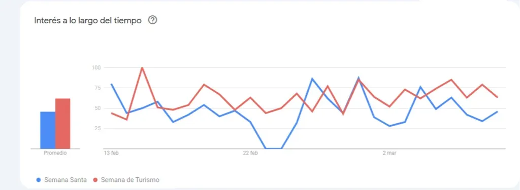 Datos de los últimos 30 días muestran que Semana de Turismo es más googleada que semana Santa, más allá de que hay períodos en los que suele buscarse más como Semana Santa y menos como Turismo.