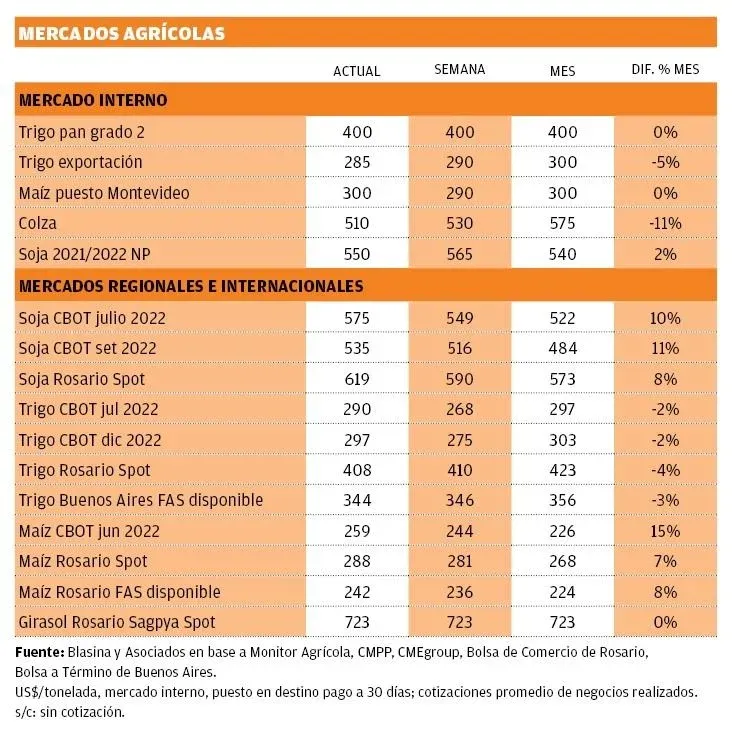 Durante la semana se supo que el área de trigo de Argentina bajó 9% este año por faltante de lluvias, en tanto el Departamento de Agricultura redujo su perspectiva de rendimiento de soja en Brasil lo que lleva su proyección de producción de 149 a 144 millones de toneladas.