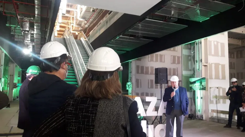 "La forma de poner el hombro es seguir para adelante", dijo el director del Estudio Lecueder, Carlos Lecueder, este martes en la explanada de Plaza Italia, luego de una recorrida de avance de obra por el que, apunta el desarrollador inmobiliario, será el primer shopping de usos comerciales múltiples de Uruguay. Se refería a la decisión de no paralizar por la pandemia la obra, que demanda una inversión de unos US$ 40 millones. Lecueder anunció que la primera etapa de Plaza Italia se abrirá al público en noviembre. Esto implica la apertura de un Disco Fresh Market, el Farmashop más amplio del país, y un restaurante de La Pasiva sobre avenida Italia. También en ese primer nivel,se inaugurará un local de Mosca y otros de redes de cobranzas y financieras.