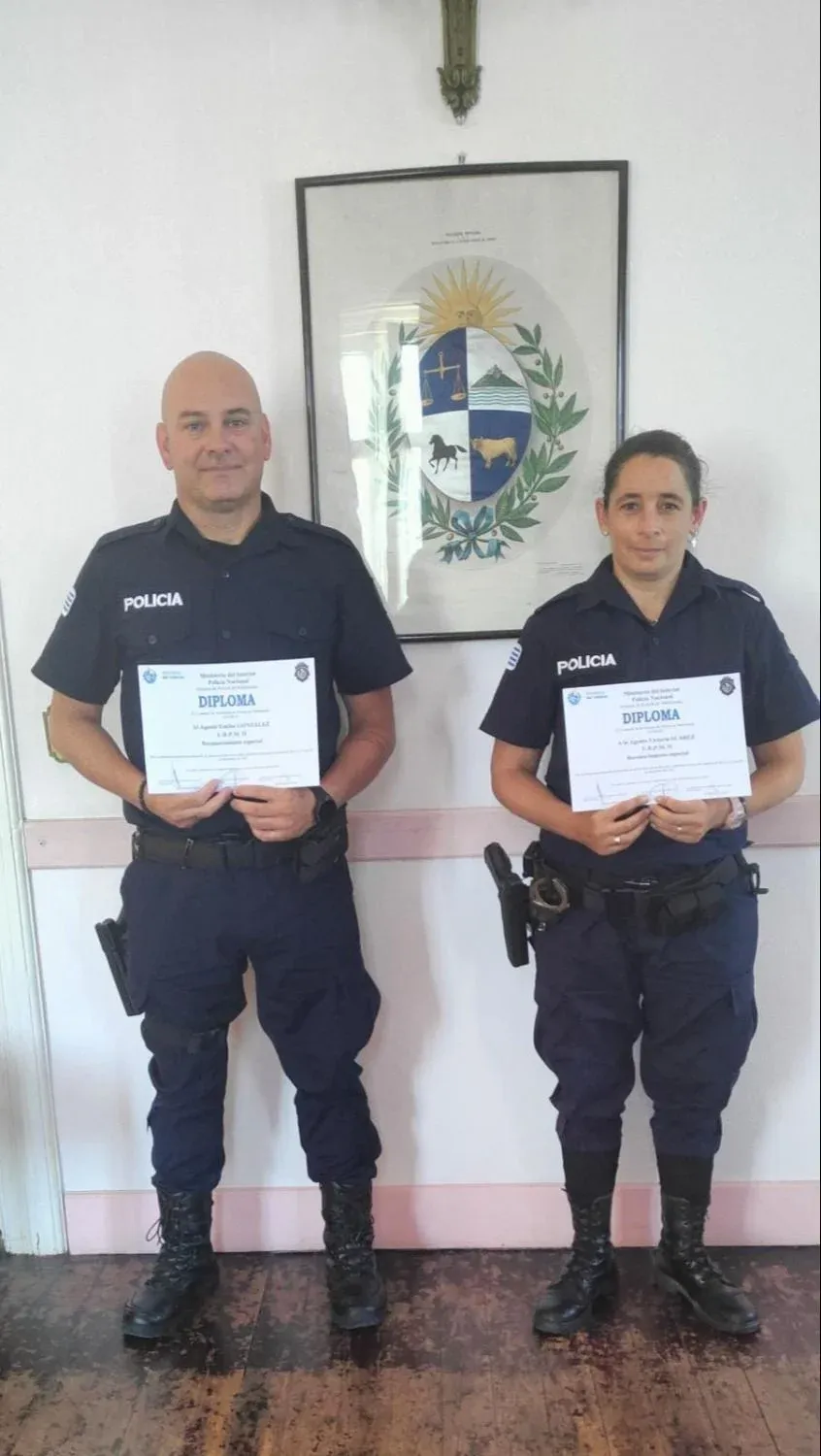 Tanto él como Suárez fueron homenajeados por la Policía de Maldonado a las 11:00 de este viernes por su labor.