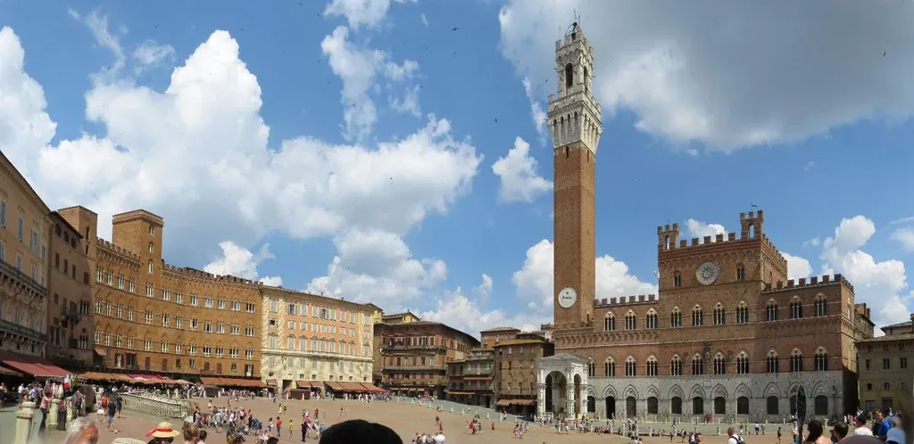 La gran protagonista del arte y la arquitectura de los siglos XIII y XIV, rival de Florencia, Siena es famosa por varios de sus monumentos históricos, como su universidad. Uno de los pintores más importantes de la Edad Media, Duccio di Buoninsegna, es originario de Siena. El Palazzo Pubblico y el mural de Ambrogio Lorenzetti, es otro de los grandes atractivos locales. Su centro histórico, declarado Patrimonio de la Humanidad en 1995, es una perfecta ciudad medieval. Una de las características que le aporta color y unicidad a sus medievales calles son las contrades, los distritos de la ciudad que tienen un símbolo identificatorio, y en forma de bandera, rasgos característicos de Siena.