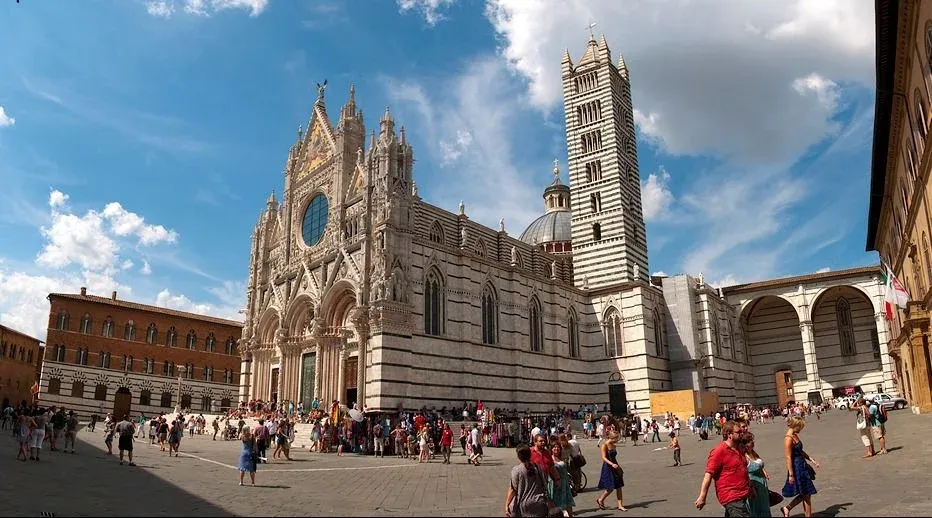 En la Piazza del Duomo se encuentra la catedral de Siena. También conocida como la catedral de Nuestra Señora de la Asunción, de una enorme belleza e importancia arquitectónica por su estilo gótico, pero además porque en su interior alberga obras de Miguel Ángel, Donatello y Bernini, el Renacimiento italiano en su máximo esplendor. La fachada principal, obra de Giovanni Pisano es otro de los puntos interesantes de la catedral. Bajo la misma, en el baptisterio se encuentra la pila bautismal de Donatello y otras figuras relevantes del Renacimiento. El museo de la catedral alberga la venerada Madonna realizada por el imponente Duccio, uno de los grandes maestros renacentistas italianos. El Museo dell’Opera Metropolitana es parte del complejo de la catedral en Siena, y es uno de los museos privados más antiguos de Italia.