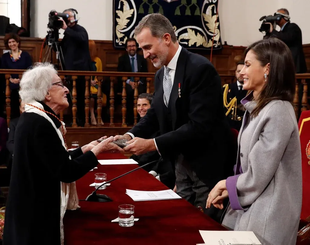7.25 - Emocionada, Ida Vitale recibe la medalla y el premio de manos del rey Felipe y la reina Letizia. "No me nace leer nada, ahora me nace abrazar, decir cosas que serían absurdas y desacomodadas. Me halagan".