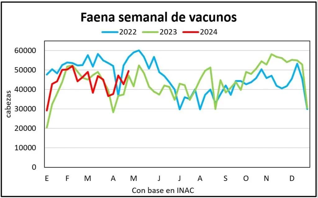 Blasina y Asociados. La incidencia de la ventana de cuota no solo se refleja en la propuesta de precios, sino también en el volumen de faena. La semana pasada fue la de mayor actividad desde principios de febrero, con 49.438 vacunos. En el acumulado anual se llevan procesadas 751.852 cabezas, 8,3% más que el año pasado.
