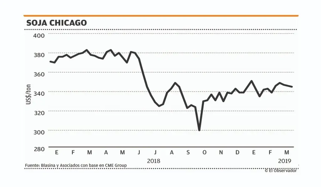 Con un contrato de julio de la soja entre US$ 340 y US$ 345 por tonelada, los valores locales base acopio en Nueva Palmira van entre US$ 310 y US$ 315 por tonelada. La oferta sigue sin aparecer, estimándose que alrededor del 20% de la producción está comprometida, pero con precio a fijar. Con este escenario, si no hay un repunte en los precios, el componente financiero va a ser determinante, ya que seguramente los exportadores no adelantarán dinero si los productores no fijan negocios en prima o precio.