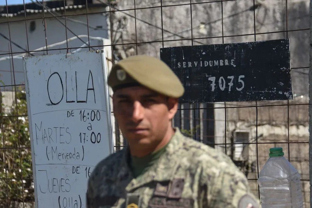 Después de bajar bolsas con zucchinis, fideos, harina y maples de huevos, en la olla Nuevo España tres soldados se sientan en la parte trasera del camión. No tienen más de 22 años y llevan menos de tres de trabajo en el batallón de infantería N.º 2 Resistencia.
