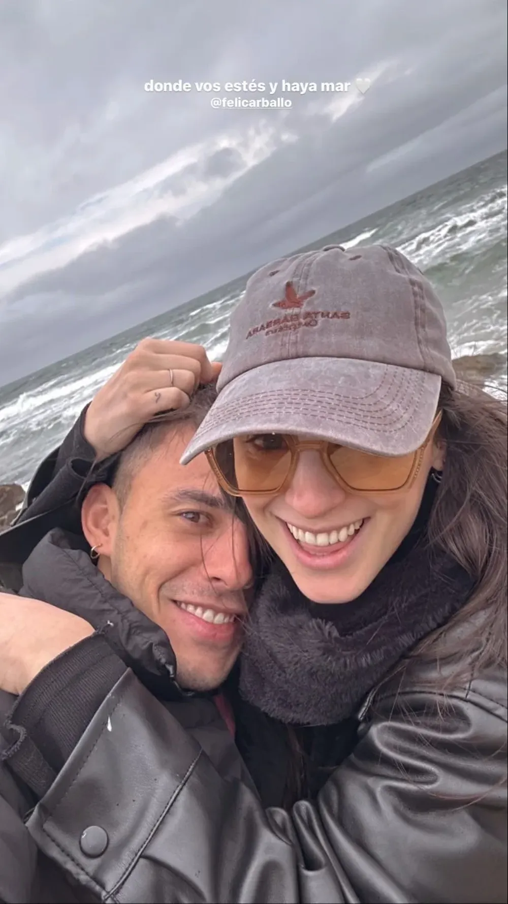 “Donde vos estés y haya mar”, escribió ella en una historia de Instagram en la que se los ve abrazados. Como respuesta, el futbolista compartió la misma historia en su propia cuenta y agregó el emoji de un corazón con una ola.