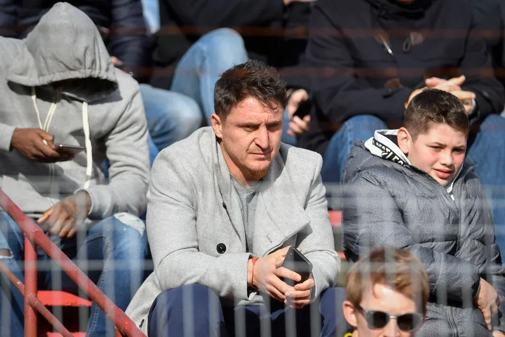 Cristian Rodríguez en la platea del Saroldi mirando de afuera el partido ante River del Intermedio