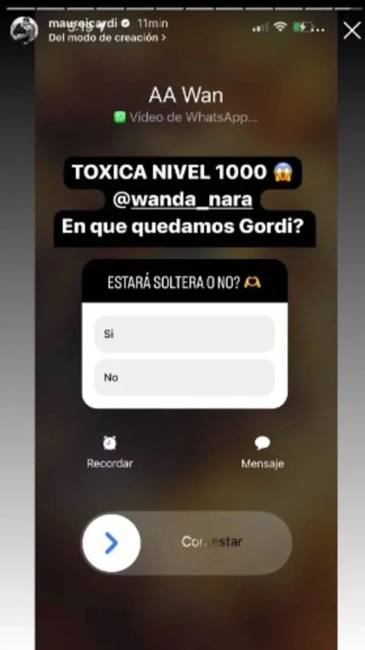 Ante el mensaje de Wanda el futbolista negó tal crisis. “¿Estás separado de Wanda?”, le preguntó un usuario en Instagam. “Como me la preguntaron mil veces ya, vamos a aclararlo de entrada. NO! No estamos separados”, respondió.