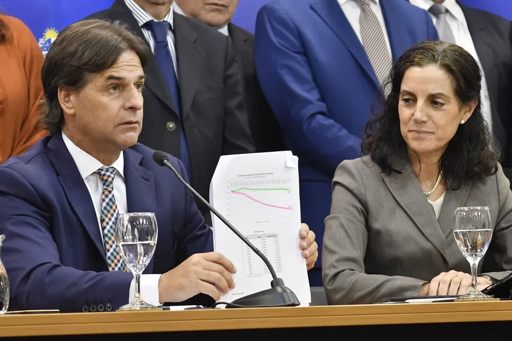 El mandatario se estaba refiriendo al déficit que "hace años" sufre el sistema previsional. Y tomó una hoja que tenía la ministra de Economía Azucena Arbeleche en el que se veía una gráfica donde se ilustraba la situación actual.
