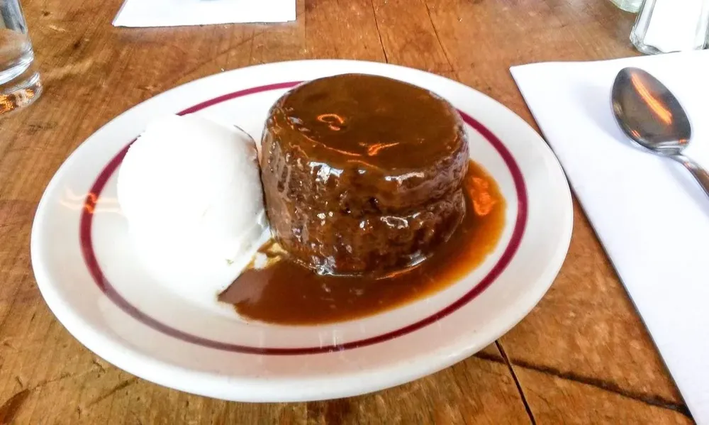 Postre típico inglés, compuesto por un bizcocho húmedo en base a dátiles, cubierto con salsa de caramelo y generalmente acompañado por una bocha de helado.