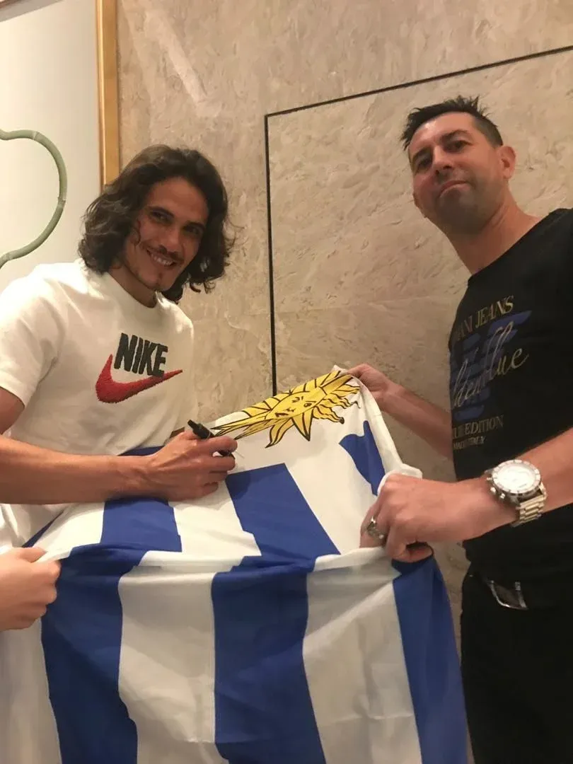 Jara también recibió a Edinson Cavani, cuando llegó con el París Saint Germain, club que tiene como espónsor a la compañía AOL de origen chino.