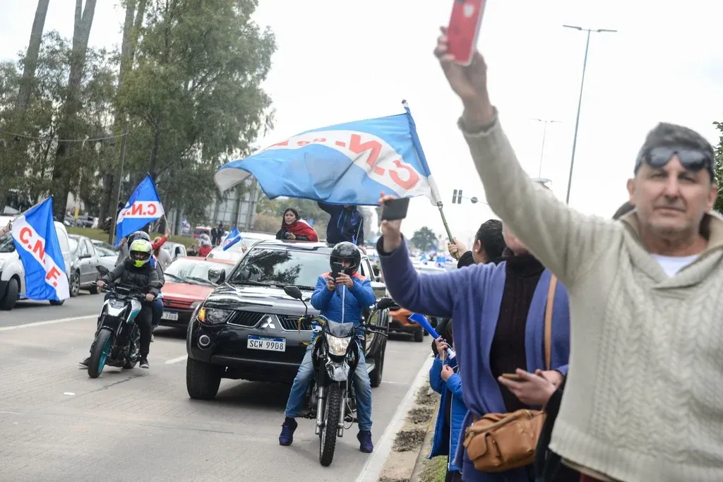 Inés Guimaraens Suárez en su regreso Desde el aeropuerto se trasladó en una camioneta acondicionada para la ocasión, que manejó un exjugador de Peñarol, en multitudinaria caravana hasta el Gran Parque Central.