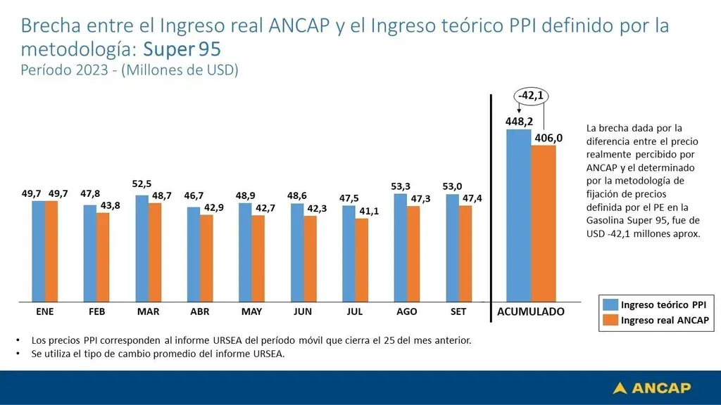 El saldo muestra que entre enero y setiembre, el ente resignó US$ 31,3 millones, según datos oficiales, como resultado de la diferencia entre los precios realmente percibidos por Ancap y el teórico definido por la metodología PPI.