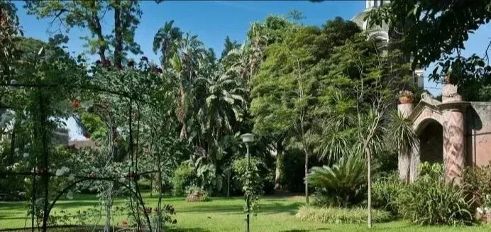 Entre los ambientes y terrazas, se pueden enlistar 22 dormitorios con grandes ventanales y pisos de mármol, y ocho baños. Por fuera, se puede destacar el bosque de palmeras americanas que crecen en un infinito jardín verde.