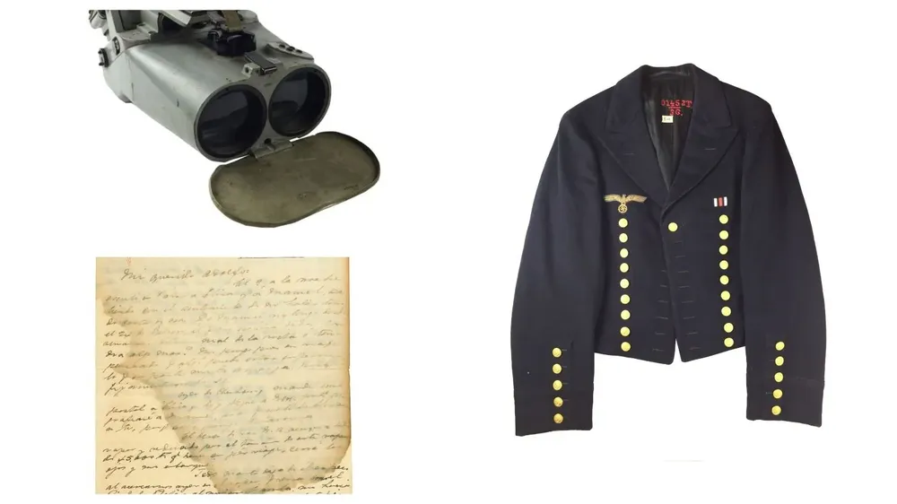 Además, se subastarán unos "prismáticos" del barco alemán que un tripulante se llevó de la nave. El capitán Langsdorff les dijo que se llevaran lo que pudieran. Muchos tripulantes, como en este caso, lo vendieron al llegar a tierra a uruguayos, dijo el director de Zorrilla Subastas.