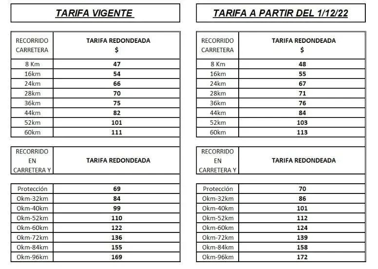 En detalle, la tarifa para los boletos suburbanos de hasta 8 kilómetros pasó de $ 47 a $ 48. Hasta 16 kilómetros, de $ 54 a $ 55; hasta 36 kilómetros $ 75 a $ 76, y hasta 60 kilómetros $ 111 a $ 113.