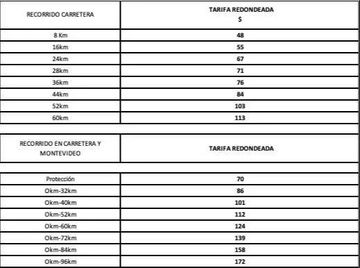 En el caso del transporte interdepartamental el tramo de 8 kilómetros se fijó en $ 48 y el precio del viaje mínimo (hasta 32 kilómetros) en $ 86, según el decreto de los ministerios de Transporte (MTOP) y Economía (MEF).