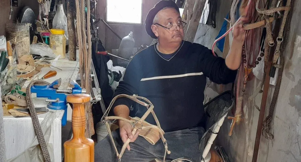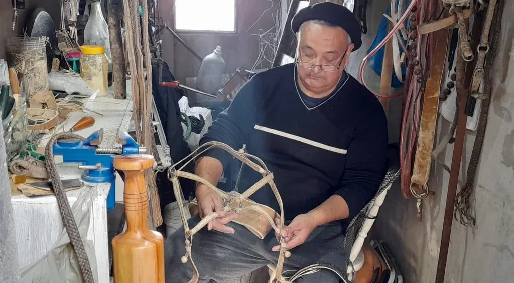Oscar Albarenque en su taller. El amor por lo rural se lo debe básicamente a sus abuelos. “Soy genuinamente capitalino, pero siempre de chico iba para afuera, mi abuelo materno era de Tacuarembó y el paterno de Florida, los visitaba y me encantaba ese mundo de los caballos, de los arreos, todo lo que eran esas piezas tradicionales en cuero crudo, ahí nació todo”, contó.