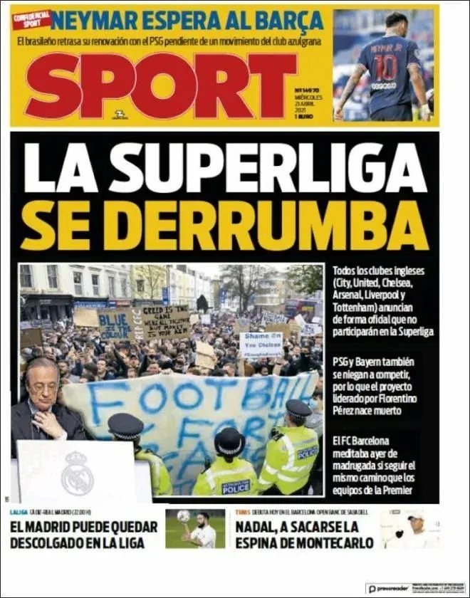 Porta de Marca del lunes 19 de abril, anunciando la creación de la Superliga
