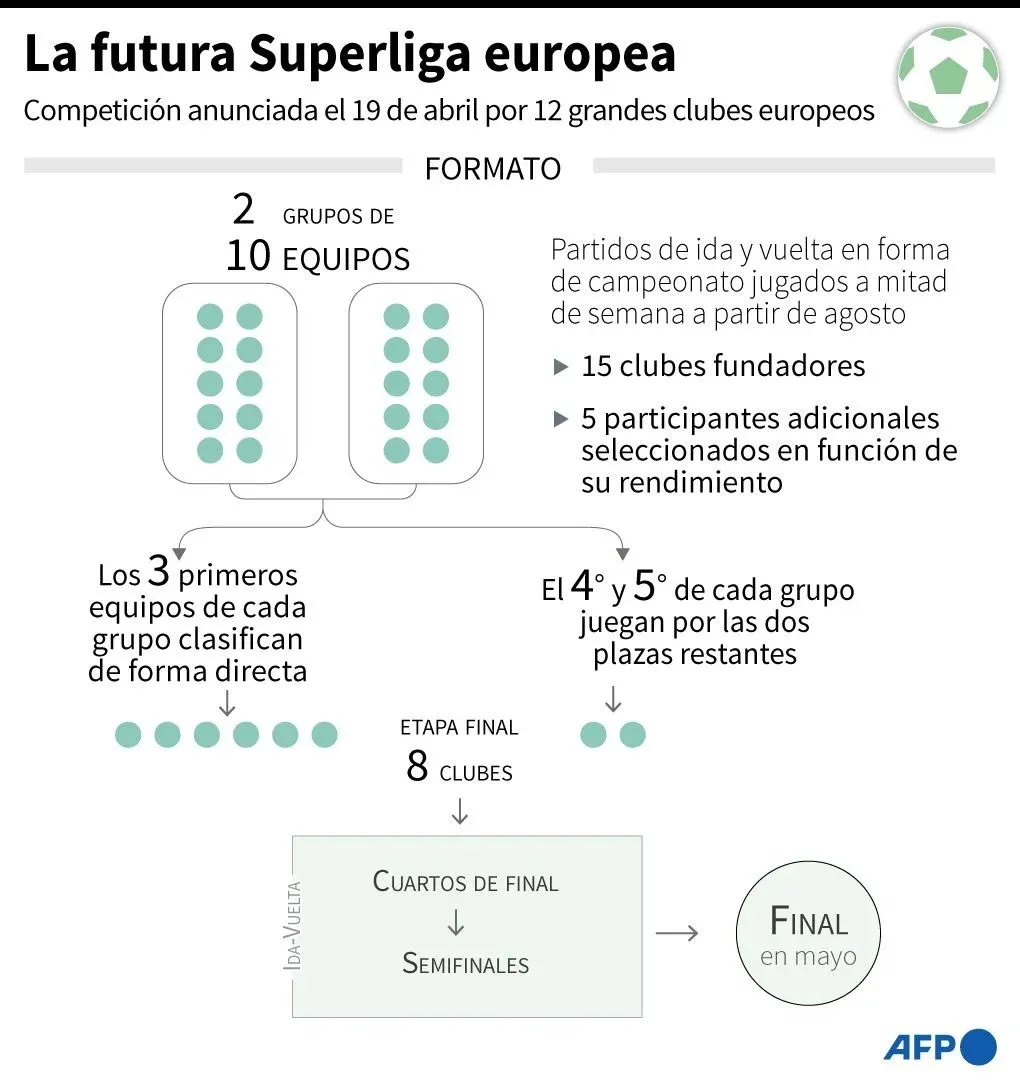 El lunes 19 de abril se anunció la creación de la Superliga europea. Real Madrid publicó las bases y la forma de competición en su web oficial.
